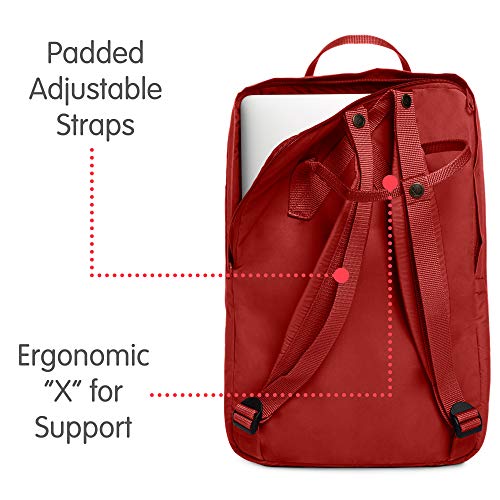 - Icône : Kanken classique avec une touche de style. Même design, taille actuelle. Rangez votre ordinateur portable 17" dans son compartiment rembourré et vous avez encore le compartiment principal et trois poches supplémentaires pour tout le reste.